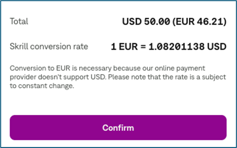 In case there is an FX conversion that will be applied, FX conversion notification has to be shown to the payer. The promise resolves to:
